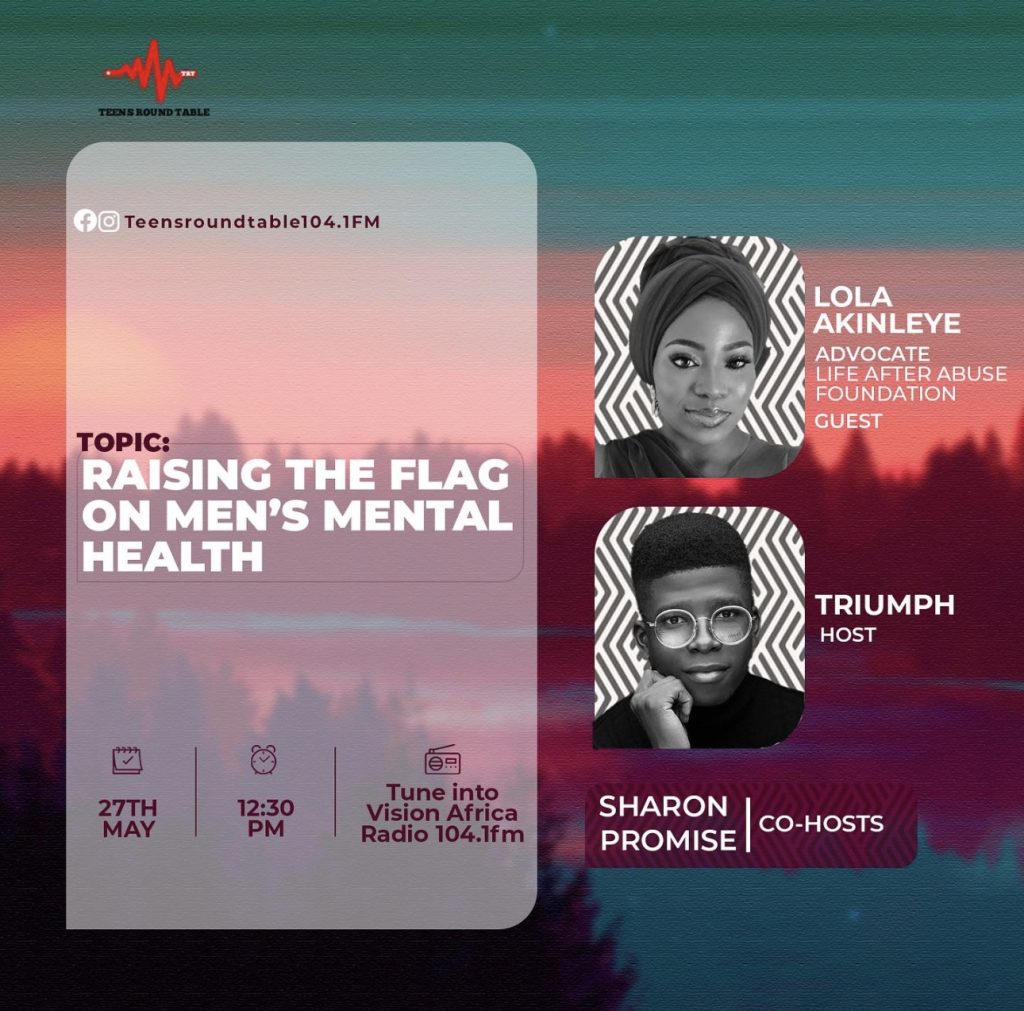 Vision Africa Radio 104:1fm radio host, Triumph Chibuike features LAAF Mental Health Advocate, Lola Akinyele on the topic: Raising the Flag on Men’s Mental Health