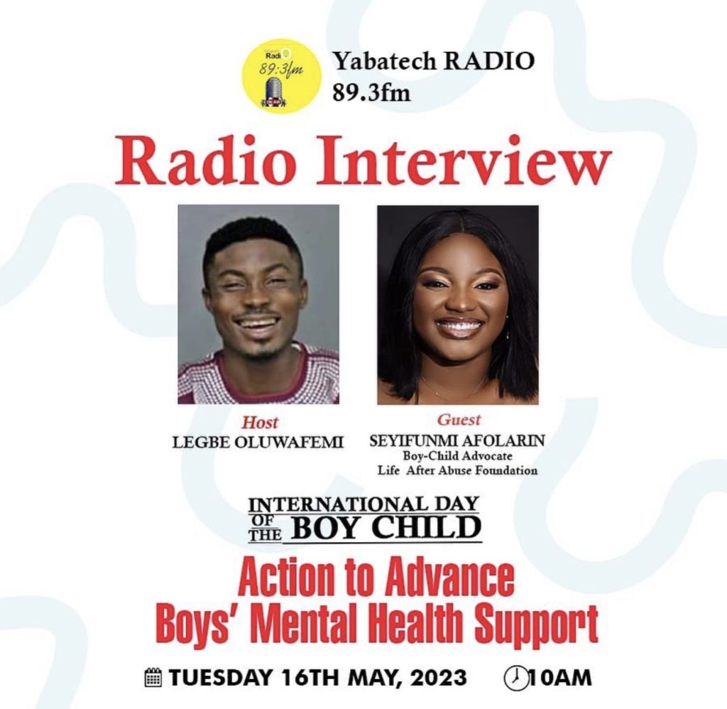 Yaba Tech Radio 89.3fm host, Olufemi Legbe features LAAF Boy-Child Advocate, Seyifunmi Afolarin in an interview themed Action to Advance Boys Mental Health